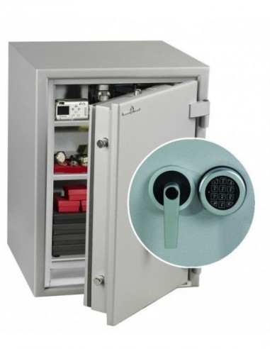 Le coffre fort ignifuge Hartmann PROTECT DUO 60 Classe 1 Serrure Électronique, résiste contre le feu pendant une heure d’où il permet la protection de tous vos documents en papier et vos objets de valeur.