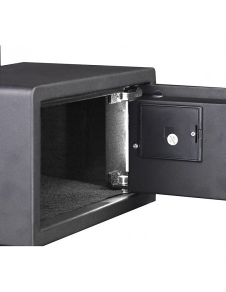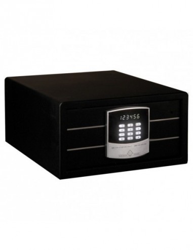 Caractéristiques du coffre - Coffre fort pour hôtel et hôpital. - Pour PC 17 pouces ou documents. - Serrure électronique. - Code maître et Code utilisateur. - Dim. externes : 190 (H) x 450 (L) x 495 (P) mm. - Capacité : 42 litres.