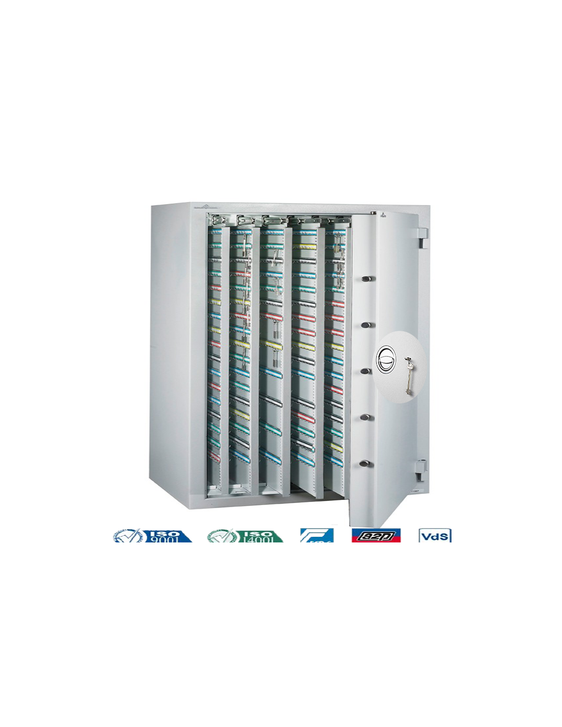 Dans le but de garantir une protection optimale, l'Armoire forte clés protect 2520 de Hartmann a été construite de manganèse, blindé et a été équipée d'un système de condamnation et d'une serrure à clé.