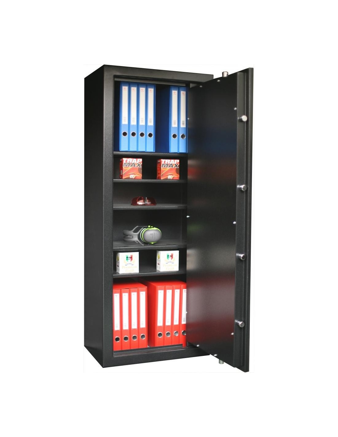 5 étagères renforcées amovibles fournies (étagères supplémentaires en option).