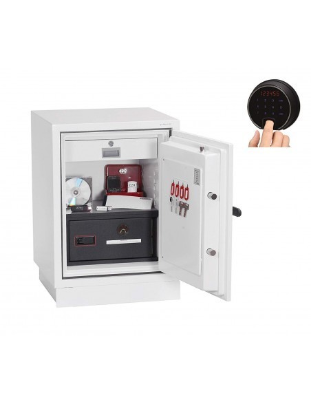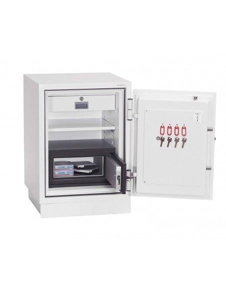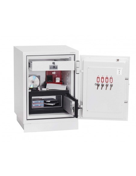 L'armoire forte de sécurité phœnix datacombi ds2501f résiste contre le feu pendant 90 minutes d’où elle permet la protection de tous vos documents en papier et vos objets de valeur.