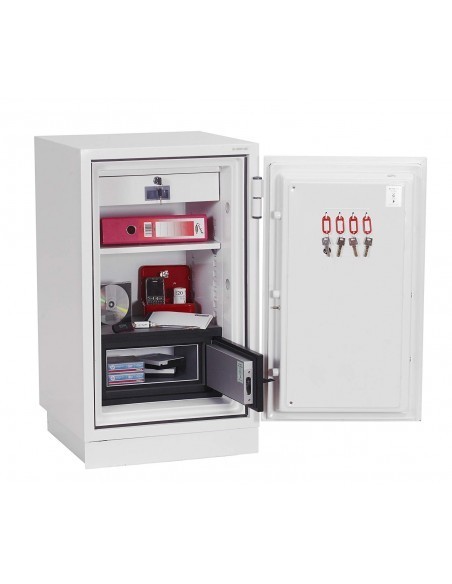 Dans le but de garantir une protection optimale, le coffre fort phœnix datacombi ds2502f assure une protection contre l'incendie pour les documents papier, disquettes informatiques, bandes et toutes formes de rangement de données et une protection de sécurité pour l'argent et les objets de valeur dans une seule unité.