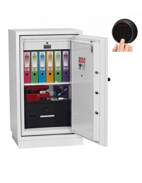 Dans le but de garantir une protection optimale,Le coffre fort phœnix datacombi ds2503f est fournit une protection contre l' incendie pour les documents papier, disquettes informatiques, bandes et toutes formes de rangement de données et une protection de sécurité pour l'argent et les objets de valeur dans une seule unité. Convient pour une utilisation dans des locaux résidentiels ou commerciaux.Il est équipé d'une serrure électronique performante de haute sécurité avec écran LED clair, alarme interne, double contrôle, code caché et code brouillé avec 128 empreintes digitales.