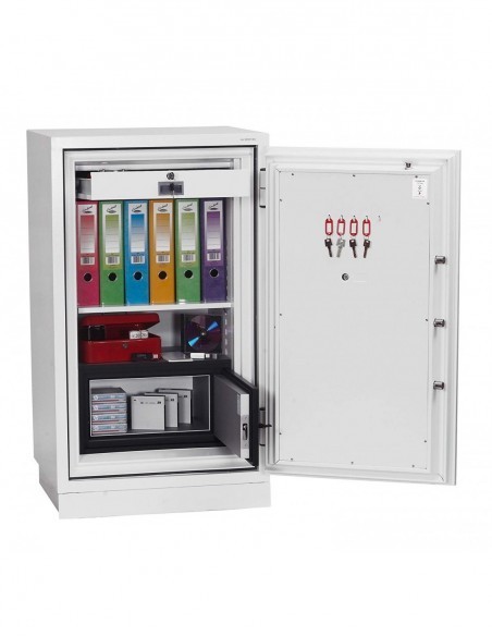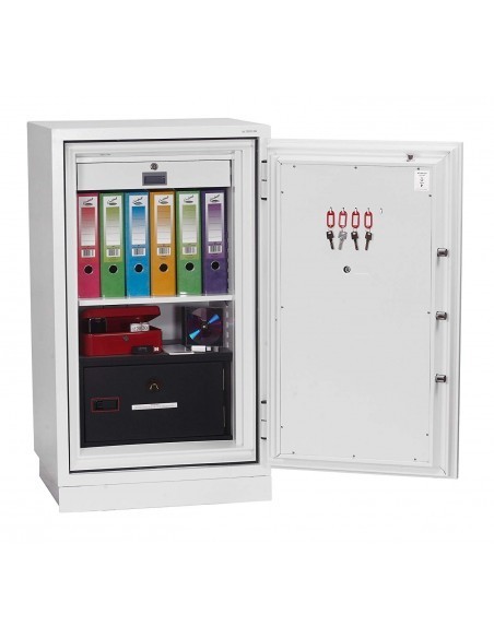Le coffre fort de sécurité phœnix datacombi ds2503f résiste contre le feu pendant 120 minute d’où il permet la protection de tous vos documents en papier et vos objets de valeur.