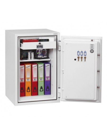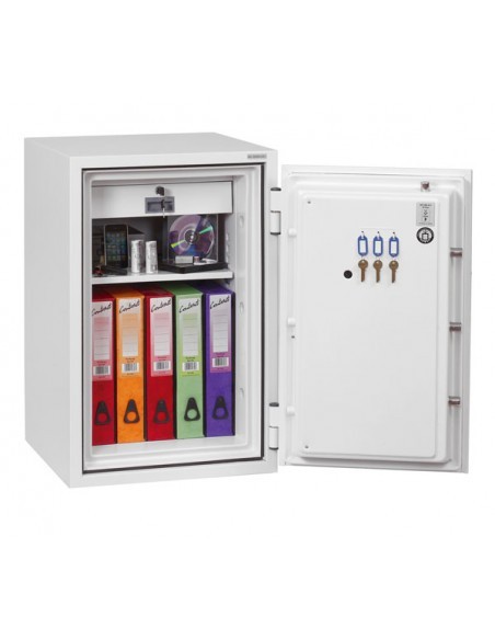 Dans le but de garantir une protection optimale, le coffre fort phœnix fire fighter fs0442k est testé par MTC - DIP120 - 60DMA norme au feu, fourni 60 minutes de protection contre le feu pour médias numériques, DVD, clefs USB et cartes mémoire.Il est equipé d’une serrure à clef de haute qualité, fourni avec deux clefs..