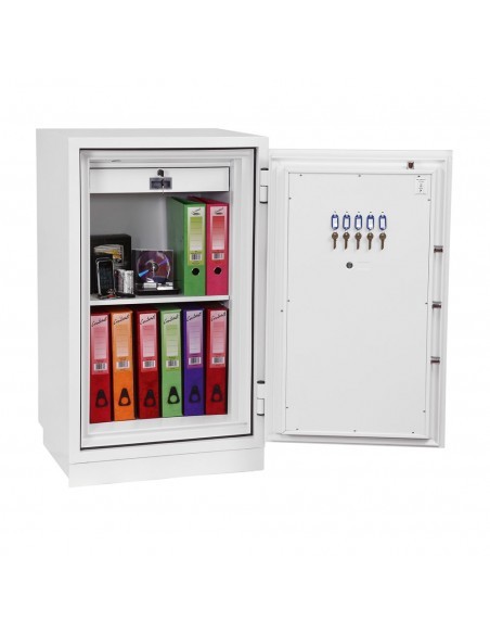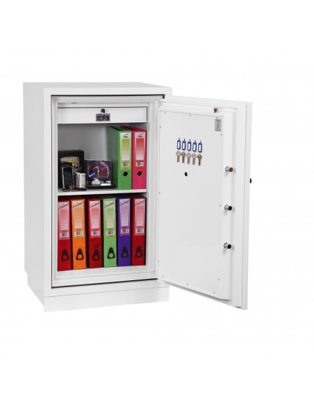 Dans le but de garantir une protection optimale, le coffre fort phœnix fire fighter fs0443k est testé par MTC - DIP120 - 60DMA norme au feu, fourni 60 minutes de protection contre le feu pour médias numériques, DVD, clefs USB et cartes mémoire.Il est equipé d’une serrure à clef de haute qualité, fourni avec deux clefs..