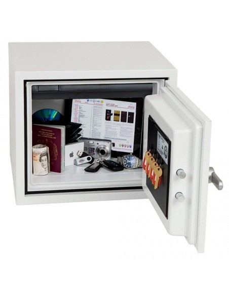 Dans le but de garantir une protection optimale, le coffre fort phœnix titan fs1281k est testé par MTC - DIP120 - 60DMA norme au feu, fourni 60 minutes de protection contre le feu pour médias numériques, DVD, clefs USB et cartes mémoire. Il est equipé d’une serrure à clef de haute qualité fournie avec deux clefs.