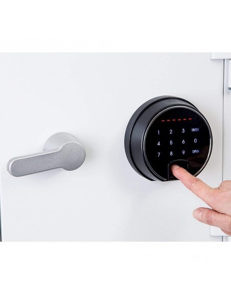 Dans le but de garantir une protection optimale, le coffre fort phœnix titan fs1282f est testé par MTC - DIP120 - 60DMA norme au feu, fourni 60 minutes de protection contre le feu pour médias numériques, DVD, clefs USB et cartes mémoire. Il est equipé d'une serrure électronique performante de haute sécurité avec un écran à LED clair , l'alarme interne, double contrôle, code caché, code brouillé qui peut être programmé avec 128 empreintes dgitales.