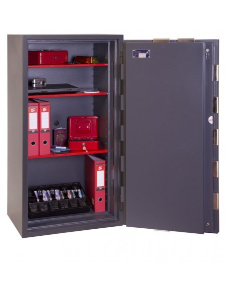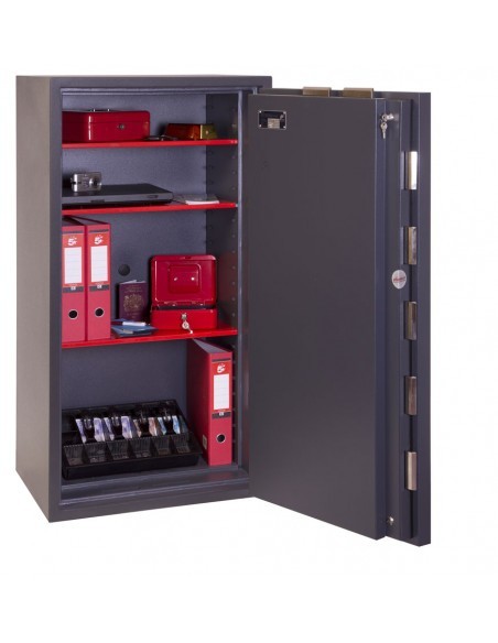 - VERROUILLAGE : Équipé d’une serrure électronique VdS classe II haute sécurité à double commande, code maître et temporisation.