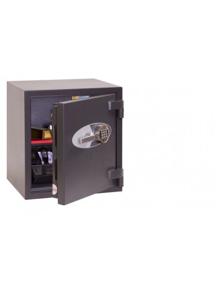 Dans le but de garantir une protection optimale, Le coffre fort phœnix Elara HS3551E est Équipé d’une serrure électronique VdS classe II haute sécurité à double commande, code maître et temporisation.