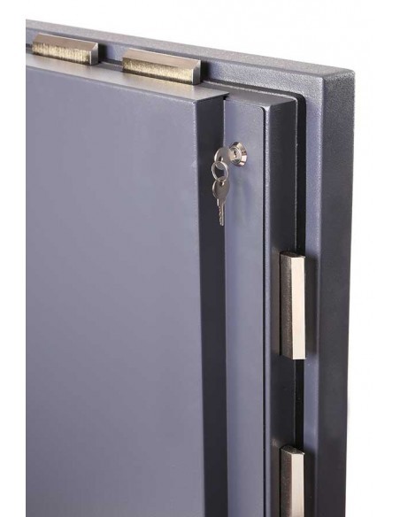 - VERROUILLAGE : Équipé d’une serrure électronique VdS Classe II haute sécurité à double commande, code maître et temporisation et d’une serrure à clé VdS Classe II haute sécurité à double tranchant.