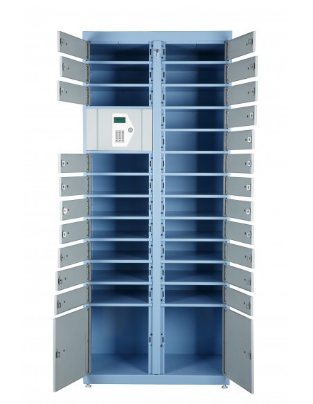 - SL0024E L'unité maître avec le panneau de commande électronique et 24 coffres de stockage.