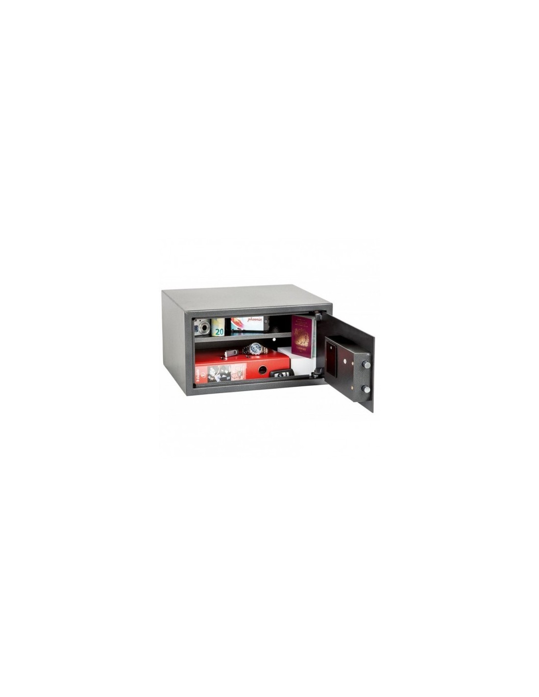 Le coffre fort phœnix dione à serrure électronique ss0302e de sécurité de la haute marque Phoenix également appelé coffre fort anti-feu est la solution idéale pour une protection optimale de vos biens de valeur contre les incendies et l'eau d'extinction du feu .