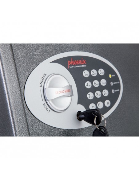 Dans le but de garantir une protection optimale,Le coffre fort phœnix dione à serrure électronique ss0302e est équipé d’une serrure électronique de pointe facile d’utilisation avec un système de verrouillage de haute sécurité antisabotage ou rebond du solénoïde. Pour une tranquillité d’esprit supplémentaire ces coffres sont équipés d’une clef de secours et d’un code maître.