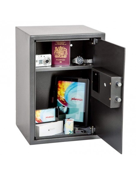Le coffre fort de sécurité phœnix vela ss0804e proposé par dev.mafenetre.com, vous permettra de garder en toute sécurité vos bijoux , vos supports : registres d’état civil, dossiers suspendus, classeurs,.. ; vos sauvegardes numériques : disque dur,cartes mémoire CD,DVD, clé usb …