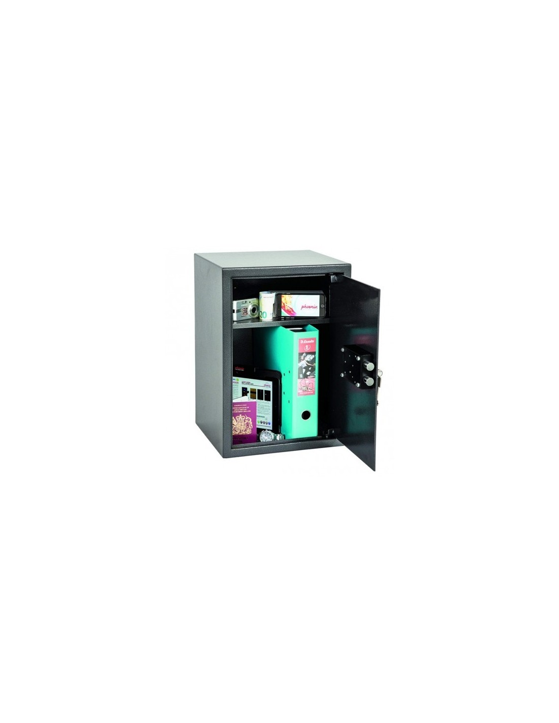 Le coffre fort de sécurité phœnix vela ss0804k proposé par dev.mafenetre.com, vous permettra de garder en toute sécurité vos bijoux , vos supports : registres d’état civil, dossiers suspendus, classeurs,.. ; vos sauvegardes numériques : disque dur,cartes mémoire CD,DVD, clé usb …
