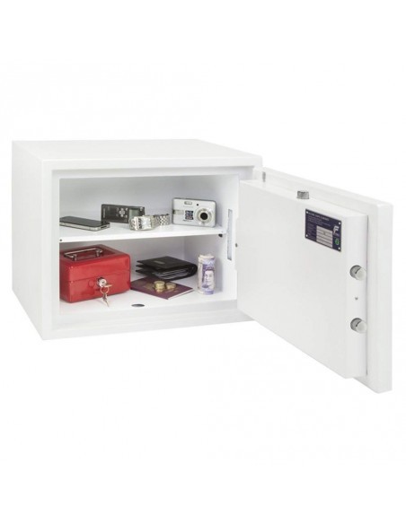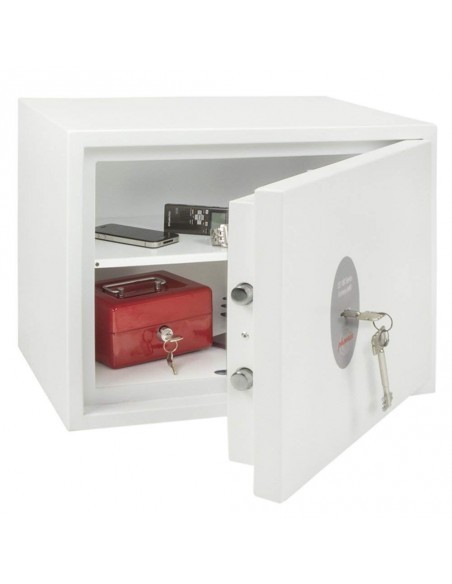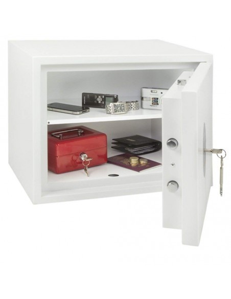 Dans le but de garantir une protection optimale, Le coffre fort phœnix fortress à serrure à clef ss1182k est construit à double paroi avec des plaques anti perçage et une protection double verrouillage de la porte ce qui donne un coffre d'une grande robustesse. Il est équipé d’une serrure à clef de haute sécurité à double panneton VDS Classe 1 , fourni avec deux clefs.