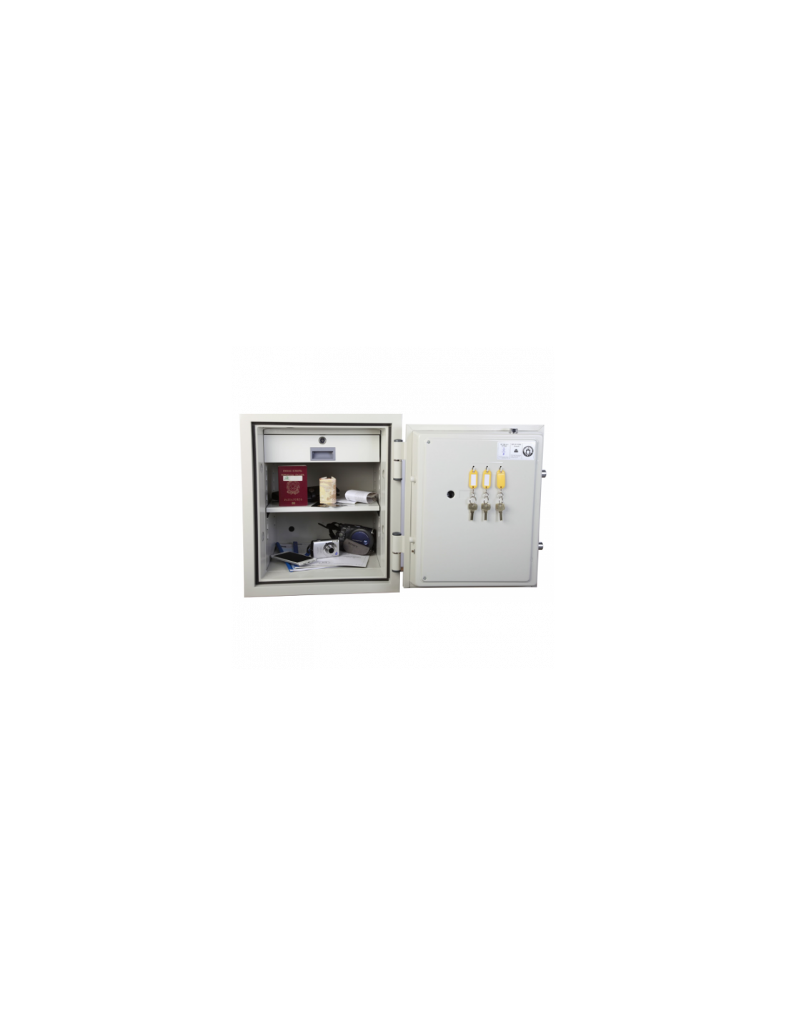 L'armoire forte ignifuge Technomax serrure à clé double panneton 150 ngs proposée par dev.mafenetre.com, vous permettra de garder en toute sécurité vos bijoux , vos supports : registres d’état civil, dossiers suspendus, classeurs,.. , vos sauvegardes numériques : disque dur,cartes mémoire CD,DVD, clé usb …