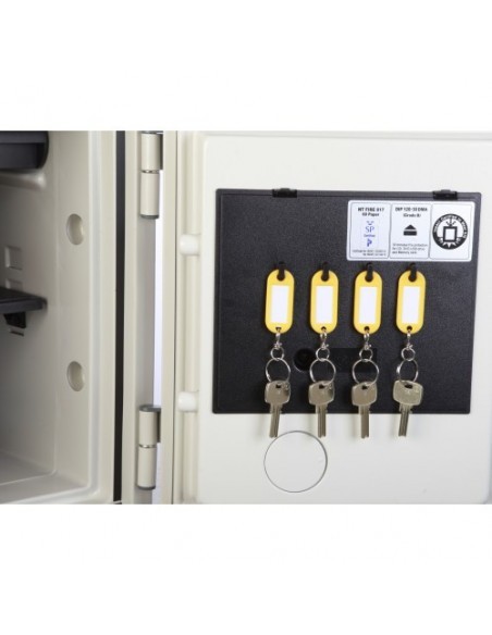 L'armoire forte a étagères serrure à clé double panneton hs/20 de Technomax proposée par dev.mafenetre.com, vous permettra de garder en toute sécurité vos bijoux , vos supports : registres d’état civil, dossiers suspendus, classeurs,.. , vos sauvegardes numériques : disque dur,cartes mémoire CD,DVD, clé usb …