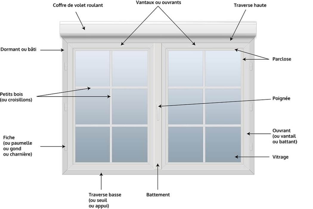 Désigne l’ensemble des parties vitrées d’une fenêtre. Il existe 3 principaux types de vitrages :