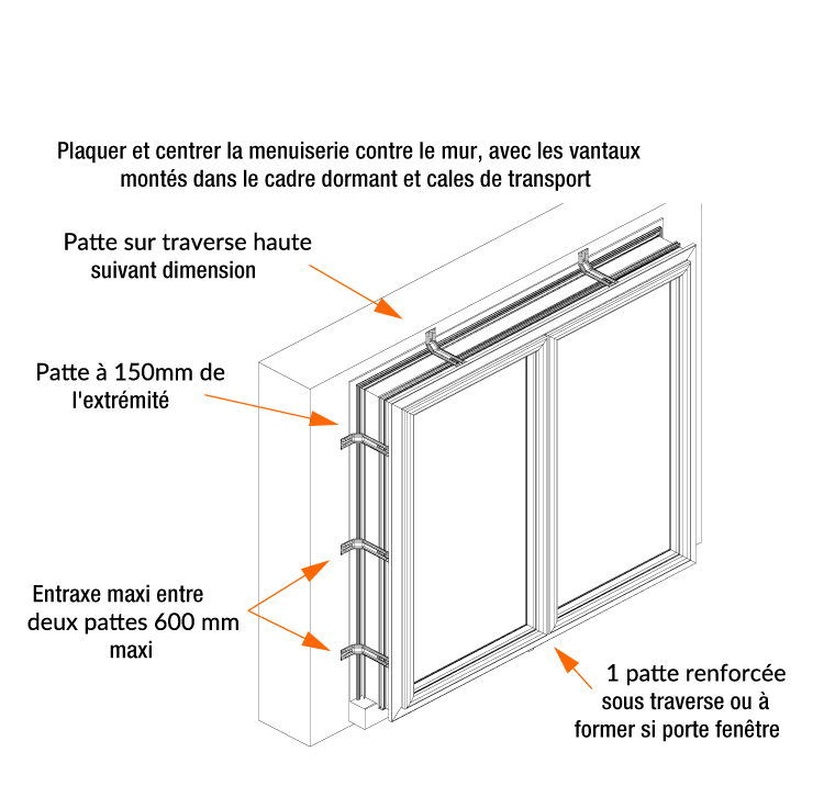 La menuiserie doit être posée dans les règles de l'art et conformément au DTU en vigueur (Schémas, croquis et photos non contractuelles).