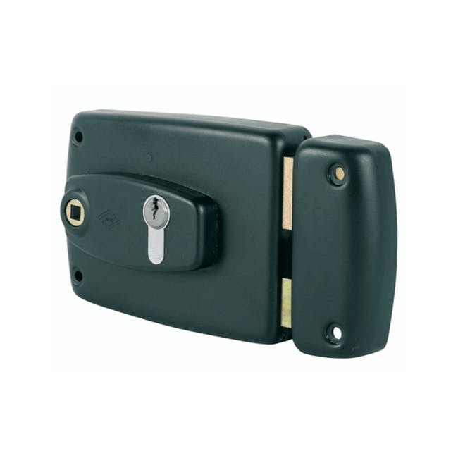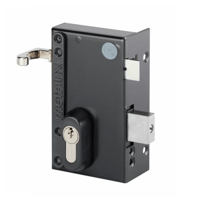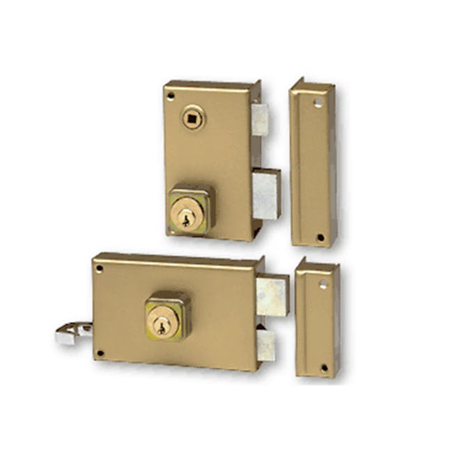 Serrure à encastrer : Appelées de même serrure à larder, conçues pour être insérées dans une mortaise. Elles sont donc compatibles aux portes à épaisseurs suffisantes.