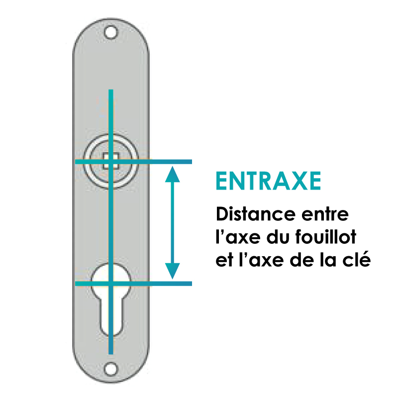 Entraxe : il s'agit de la distance entre l'axe central de la poignée et l'axe central du cylindre. L'entraxe d'une serrure est standard à 70 mm.