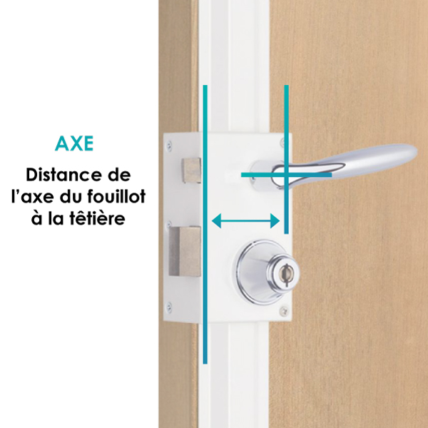 Axe : l'axe, c'est la distance qui sépare le bord de la porte de l'axe central du cylindre. Les axes de serrures sont généralement de 40 ou 50 mm.