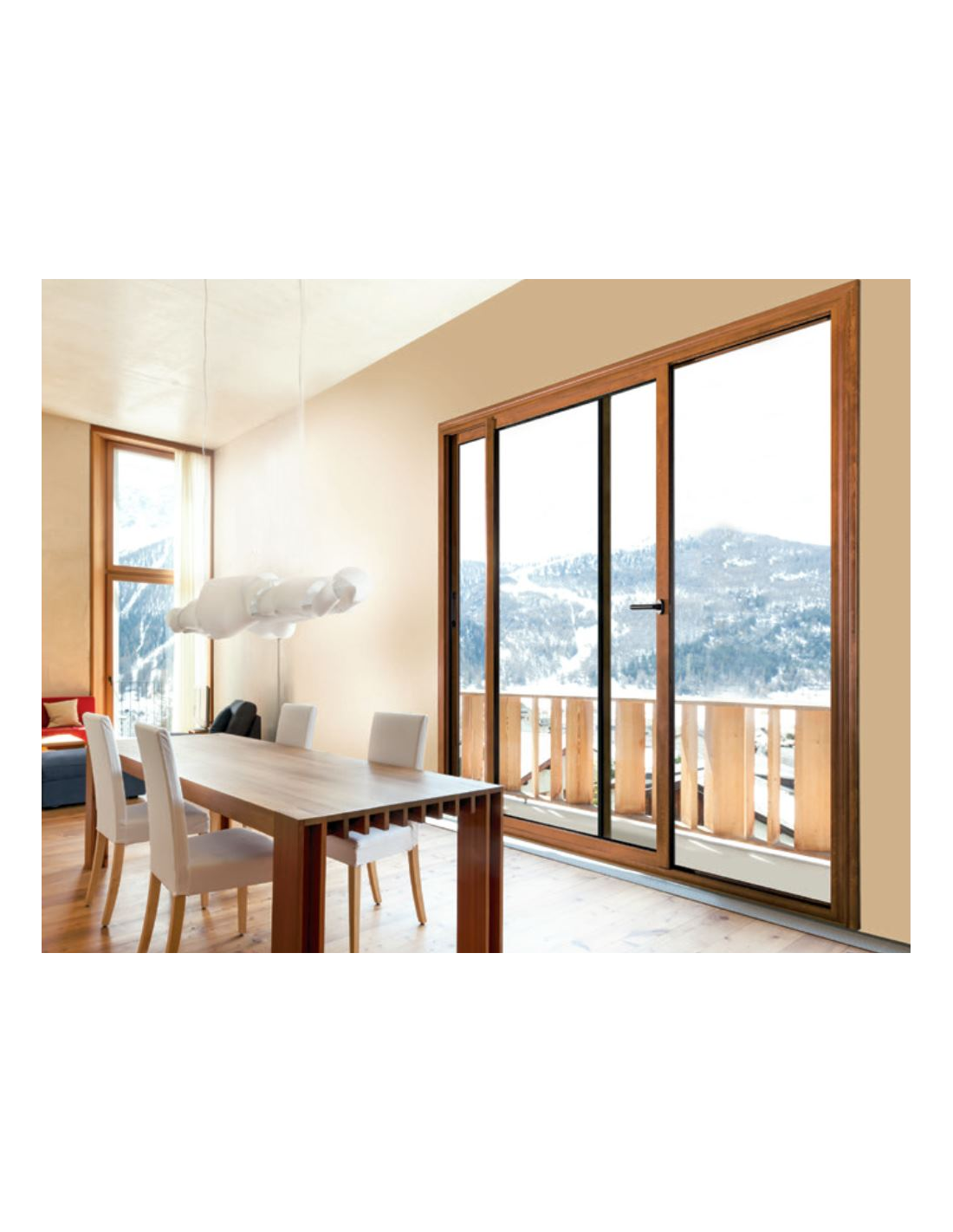 Cette porte coulissante s’ouvre avec une poignée «Sécustik » et une poignée escamotable en option sur le vantail de service pour optimiser son ouverture. La teinte chêne doré donnera une touche chaleureuse à votre intérieur, sans entretien particulier malgré les différentes situations climatiques.