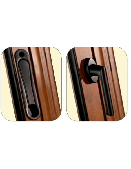 Cette porte coulissante s’ouvre avec une poignée «Sécustik » et une poignée escamotable en option sur le vantail de service pour optimiser son ouverture.