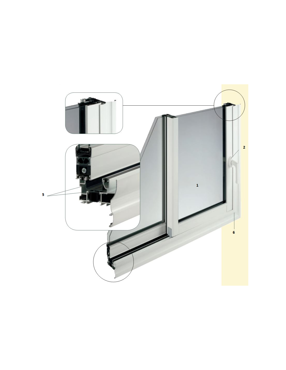 Coëfficient de résistance thermique Uw jusqu’à 1,4 W/m2 Performances thermiques améliorées et limitation des phénomènes de condensation et de froid avec une rupture de pont thermique multi-chambre dans l’ouvrant et dans le dormant.
