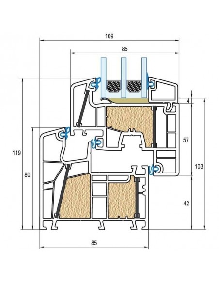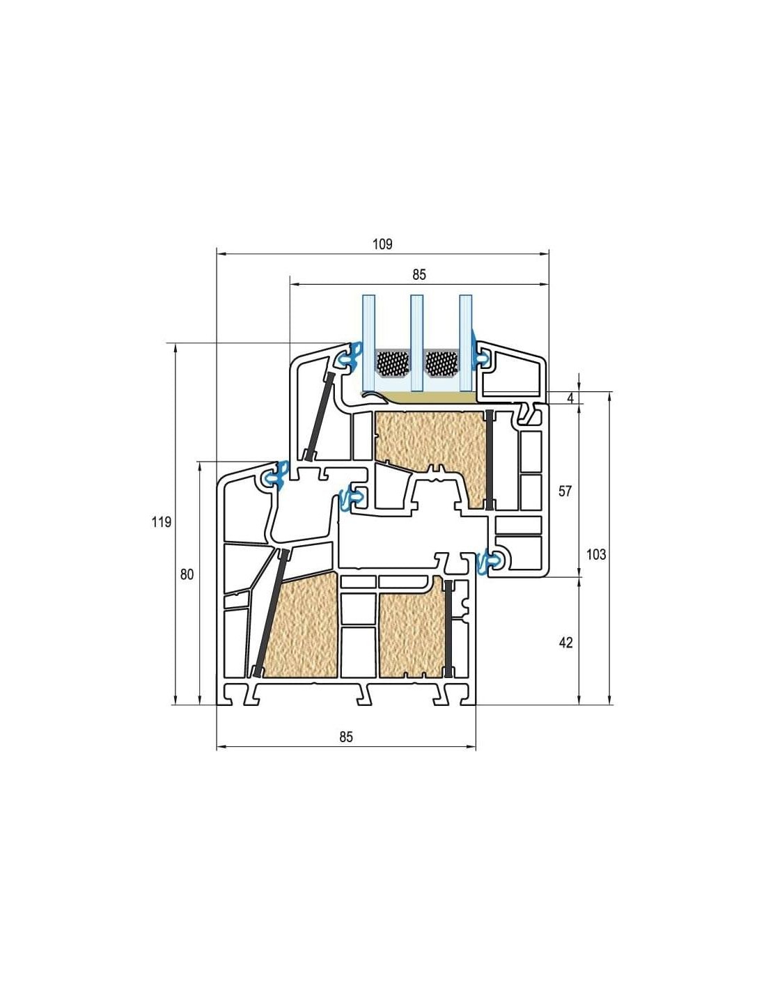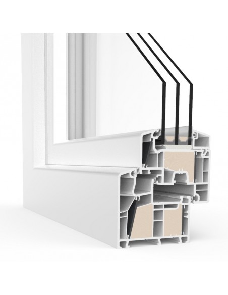 - Uf 0,79 W/m²K Uw=0,76 W/m²K avec triple vitrage standard avec Ug=0,6 W/m²K et Psi = 0,040 W/mK