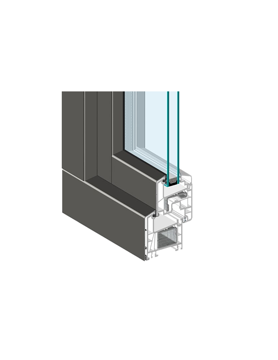 - Section permettant d‘accueillir des double ou triple vitrages, jusqu‘à 42 mm d‘épaisseur