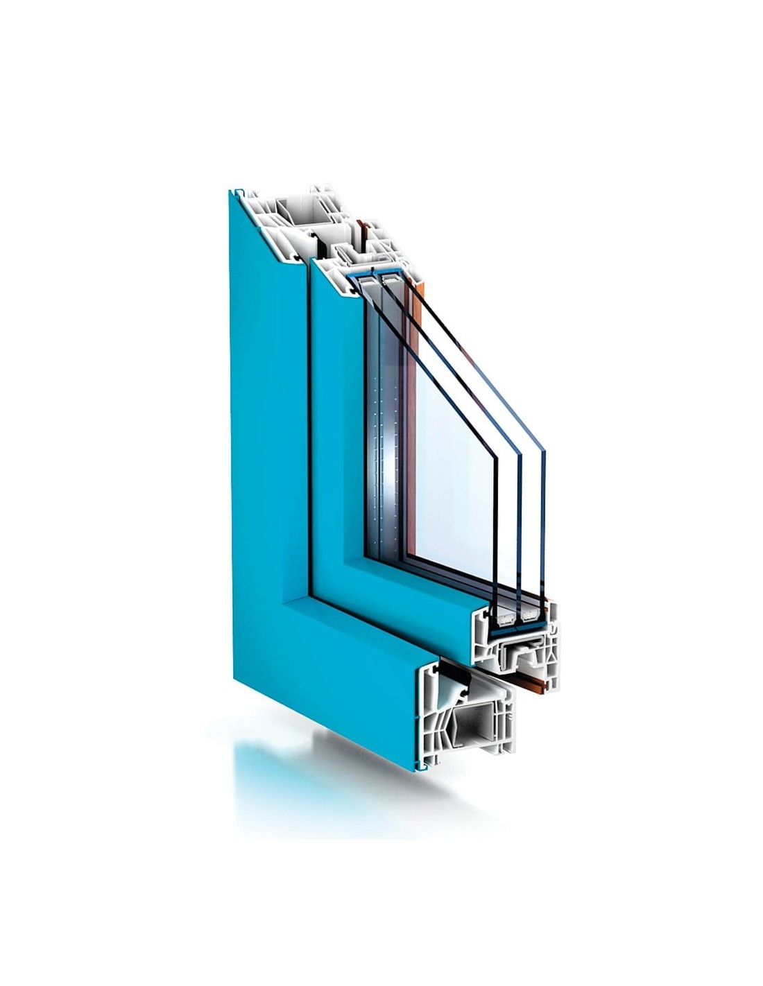 - Profilé à 6 chambres. Epaisseur d’isolation de 76 mm.