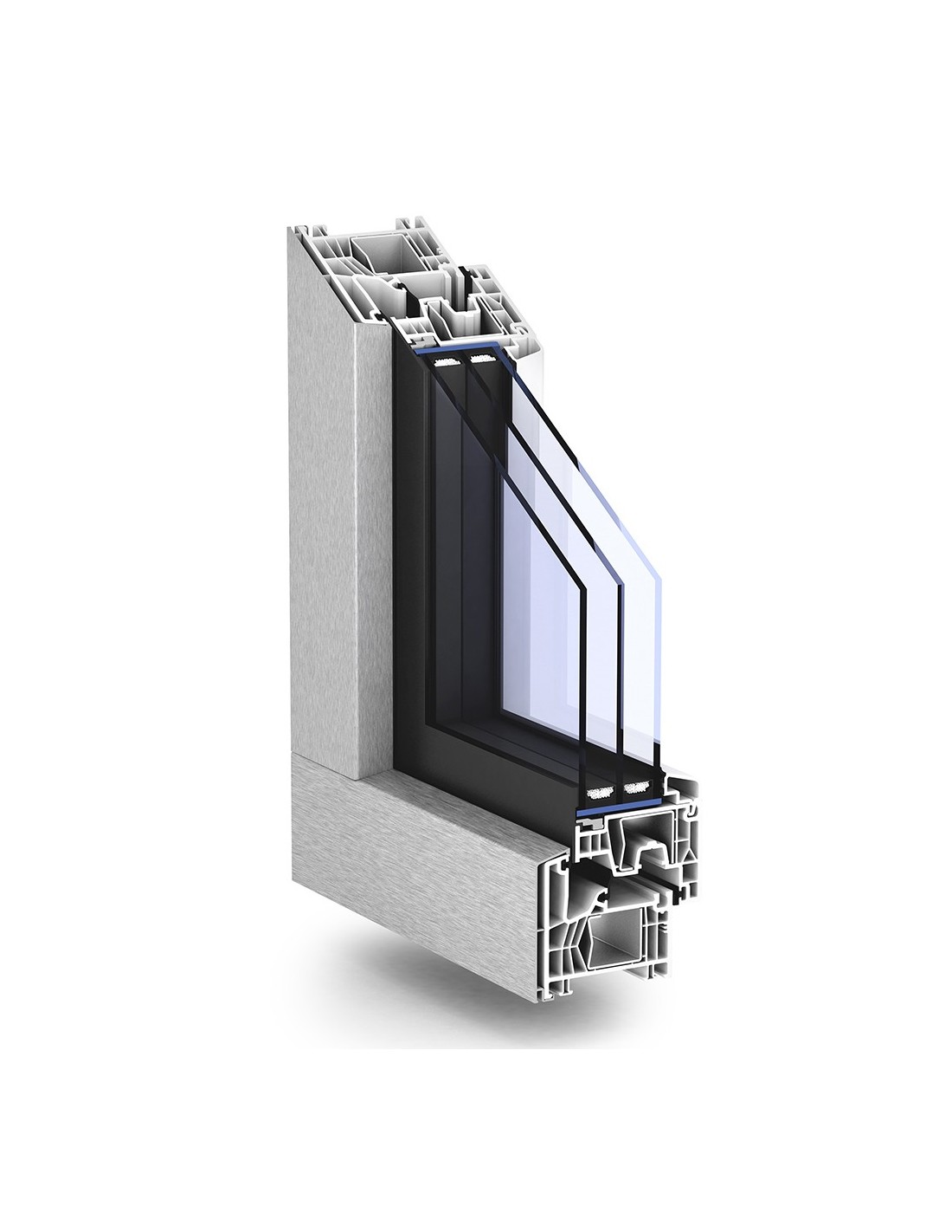 AluClip Zéro c‘est le choix d’un ouvrant semi-caché en aluminium pour réaliser des fenêtres esthétiques, résolument modernes et performantes ! AluClip Zéro élargit le champ des possibilités en proposant une esthétique très contemporaine, adapté à toutes les demandes du marché. Ce système se combine avec les capots en aluminium AluClip sur la face extérieur du profilé en PVC. Ce capot pourra ainsi être laqué à la couleur de votre choix, sélectionné parmi le nuancier RAL. Ce système s‘applique aux profilés de 76 mm d‘épaisseur avec un triple joint dont un joint central, qui répond aux besoins actuels et aux attentes du futur. Cette gamme en 76 mm permet d‘atteindre de très hautes performances thermique et acoustique : Uw = 1.1 W/m²K et 42 dB. Que vous aimiez le rustique, moderne, le contemporain, voire l‘avant-gardisme, l’AluClip Zéro vous apportera une solution personnalisée.