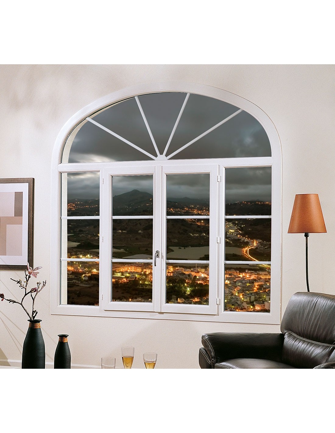 Pour une large vue et afin d’optimiser la lumière entrante, vous bénéficiez avec cette ligne de fenêtre cintrée Maestro, de 4 vantaux avec imposte fixe. Votre décor intérieur s’harmonise agréablement avec ces courbes, qui donneront beaucoup de cachet à votre habitation.