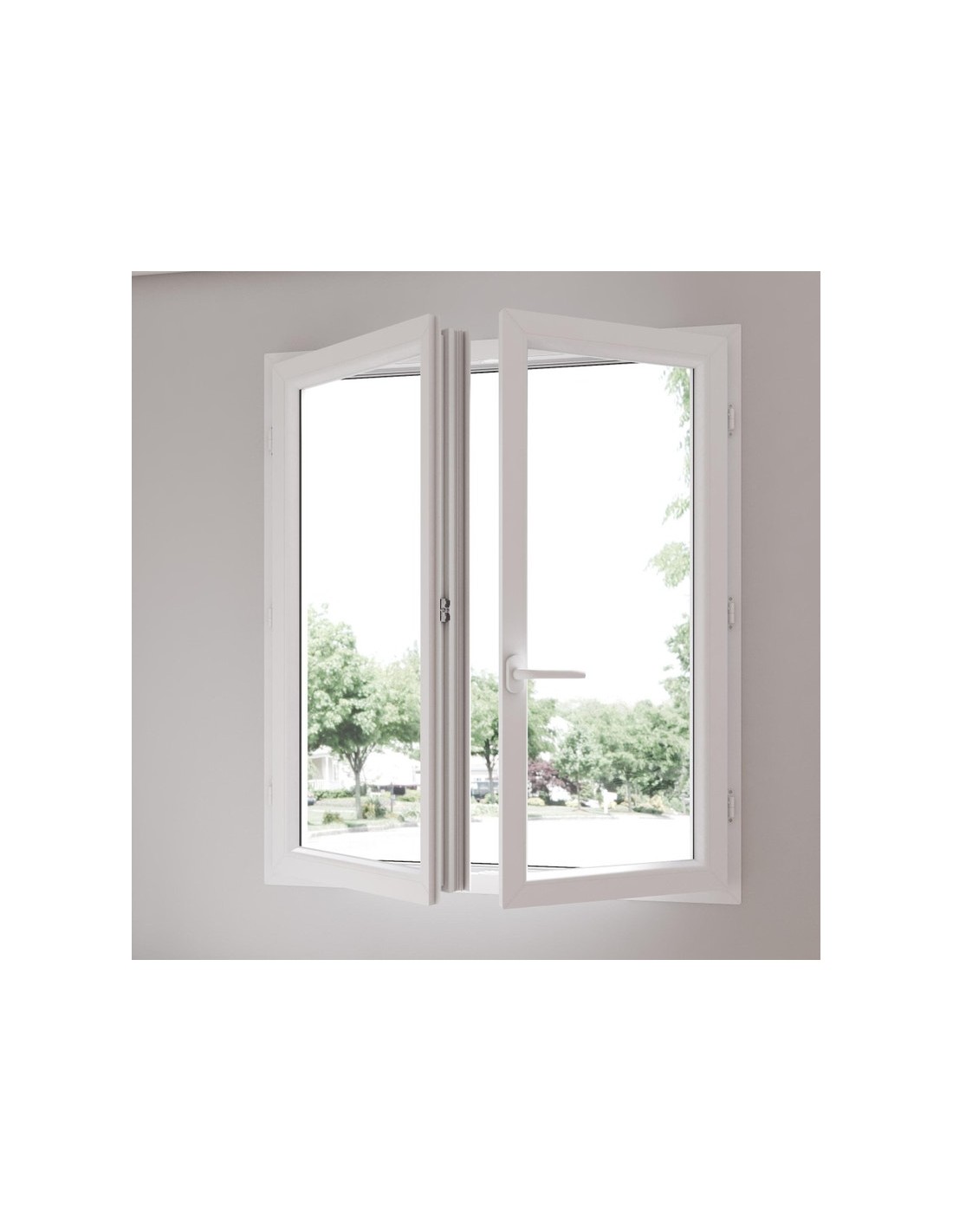 La fenêtre PVC à deux battants est la fenêtre classique, que l’on retrouve partout en France, d’où son nom « d’ouverture à la française ». Extrêmement isolante, munie de renforts métalliques et fabriquée jusqu'à 2 mètres de large, notre menuiserie convient idéalement à tout type d’ouvertures, notamment pour les grandes fenêtres.