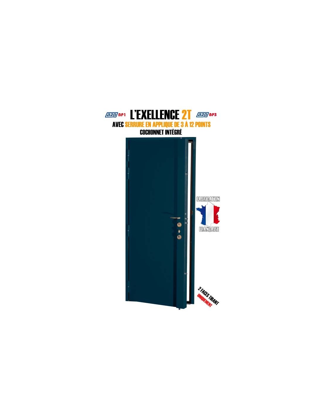 L'EXCELLENCE 2T est un bloc-porte blindé doté d'une serrure carénée en applique et de deux faces blindées en acier.