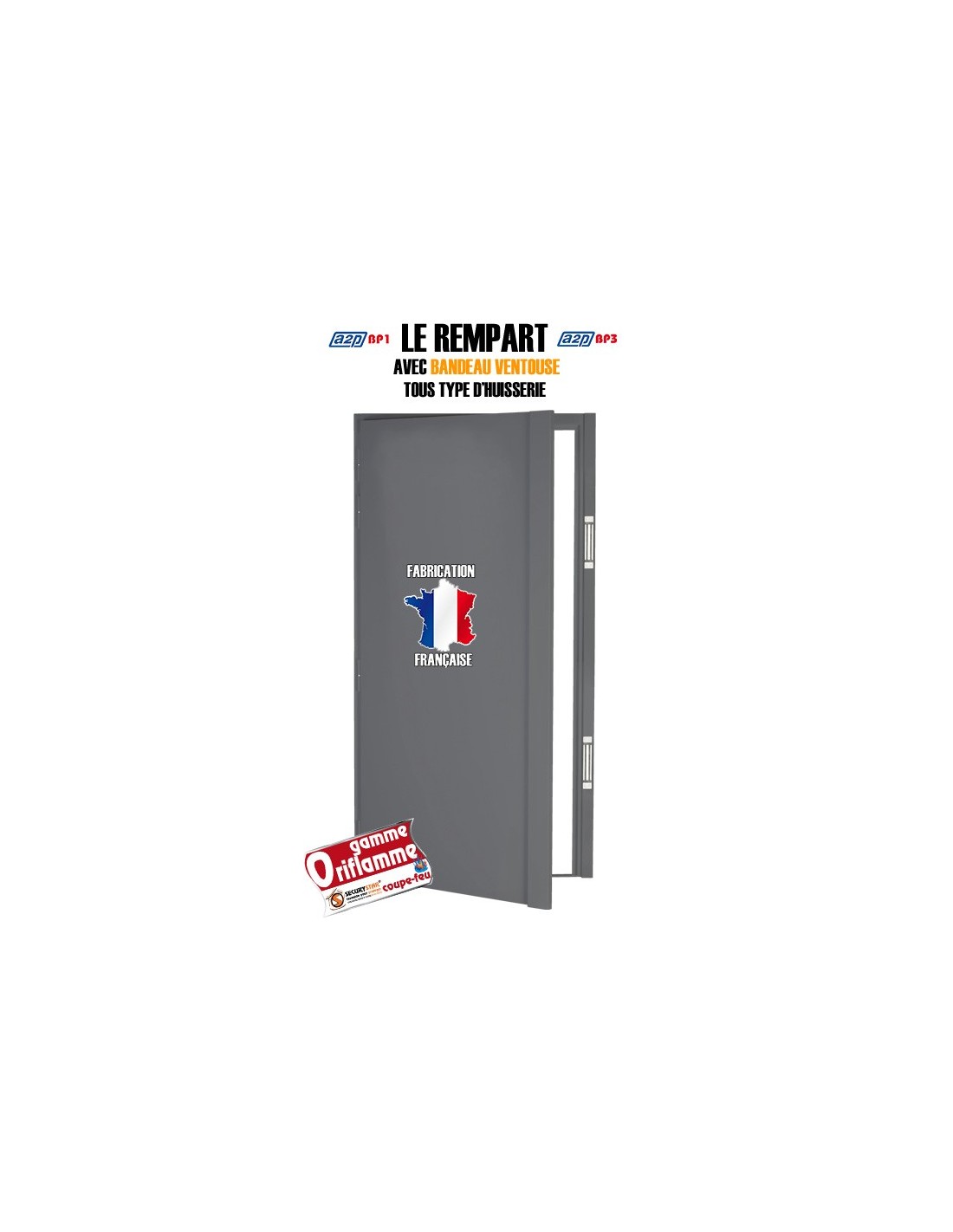 Le REMPART est une porte blindée coupe-feu certifiée A2P BP1 ou A2P BP3 avec bandeau ventouses électromagnétique.