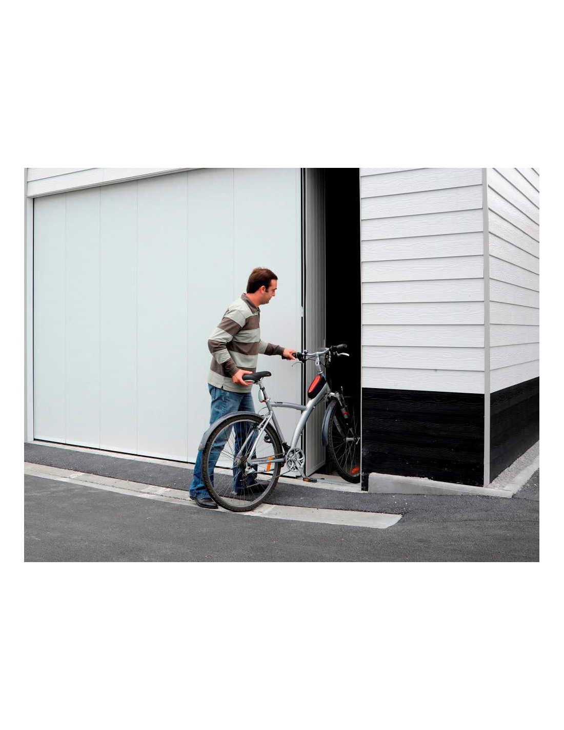 Pour parfaire l’esthétisme du garage, les finitions sont travaillées sur chaque détail : rails laqués blancs, cache-vis…