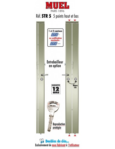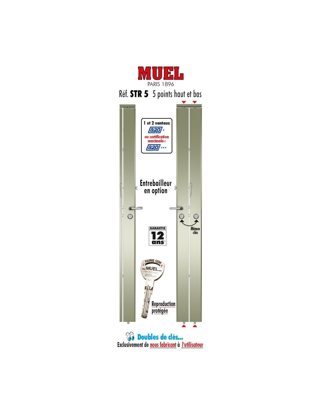 - Serrure de porte 5 points : 3 points latéraux + 2 points haut et bas
