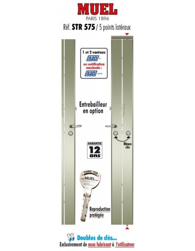 - Serrure certifiée A2P par le CNPP (Centre National de Prévention et de Protection). Deux versions :