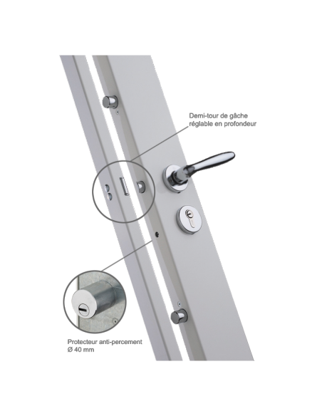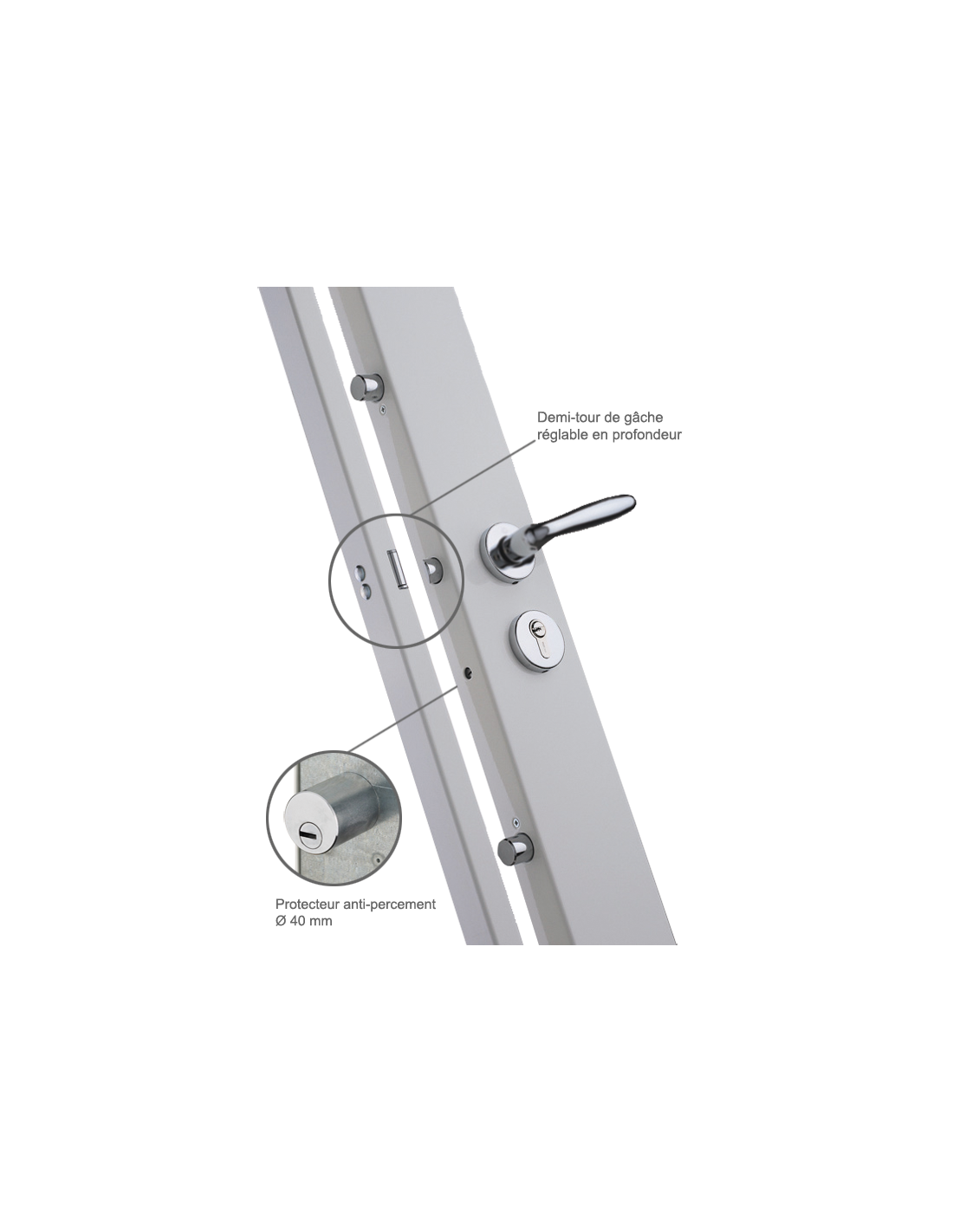 Options : gâche avec gâche électrique intégrée et points haut et bas.