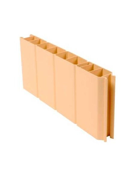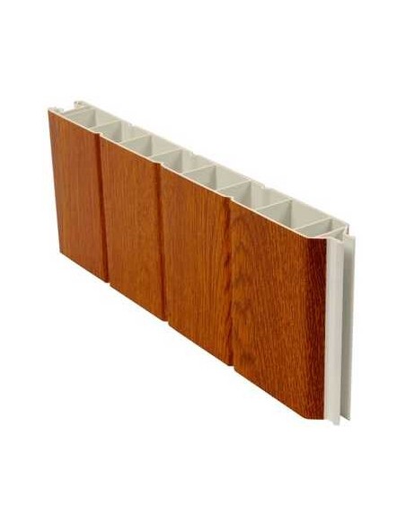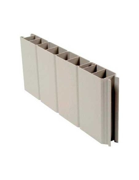 - Composé de lames PVC de 24 mm d'épaisseur, clippés et collés avec frises au pas de 50 mm