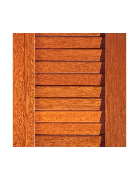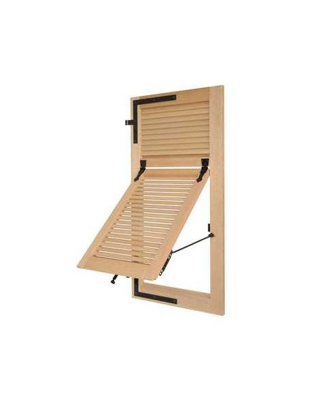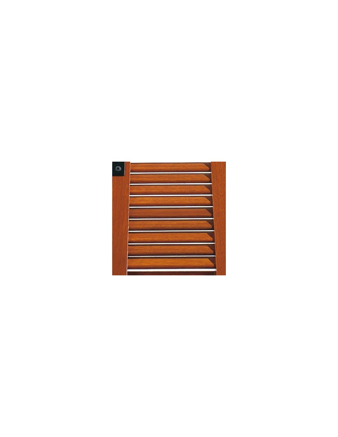 Volet battant bois avec lames ajourées pour laisser passer la lumière.